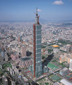 臺灣101金融大廈:位于中國臺灣臺北,原名臺北國際金融中心(taipei financial center),設計師李祖原。為臺北市政府的bot開發案,業主是臺北金融大樓股份有限公司。 是位于臺灣臺北市信義區的一幢摩天大樓,2003年建成,樓高508米,地上101層,地下5層,是目前全世界最高的摩天大樓... [全文]