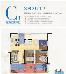 C戶型:3+1房2廳2衛(贈送30.29㎡)