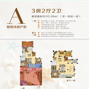 A戶型:3房2廳2衛,帶地下室(4房1廳)前庭后院(贈送225㎡)