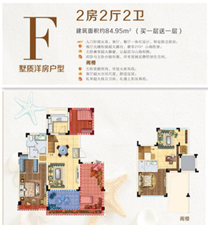 F戶型:2房2廳2衛(轉角陽臺)帶閣樓(2房1廳)(贈送111.6㎡)